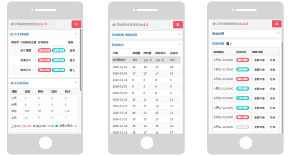 查詢組合條件豐富,界面展現可自定義;針對競價需要看關鍵詞,來源渠道;針對咨詢需要看電話號碼,預約時間;針對網咨、面咨需要看預約備注;可自定義展現。